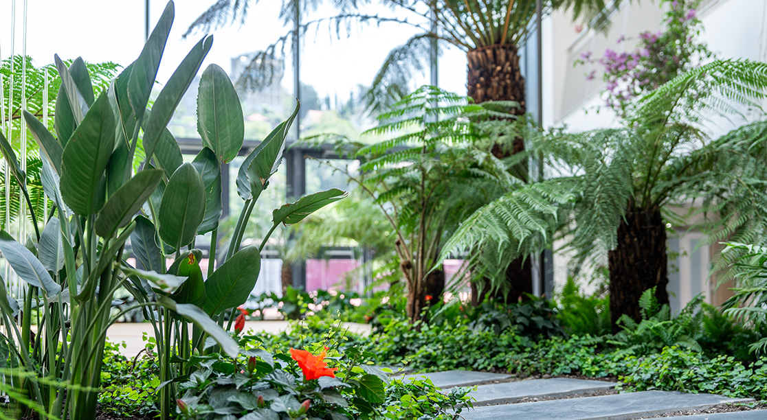 уникальный атриум с тропическими растениями